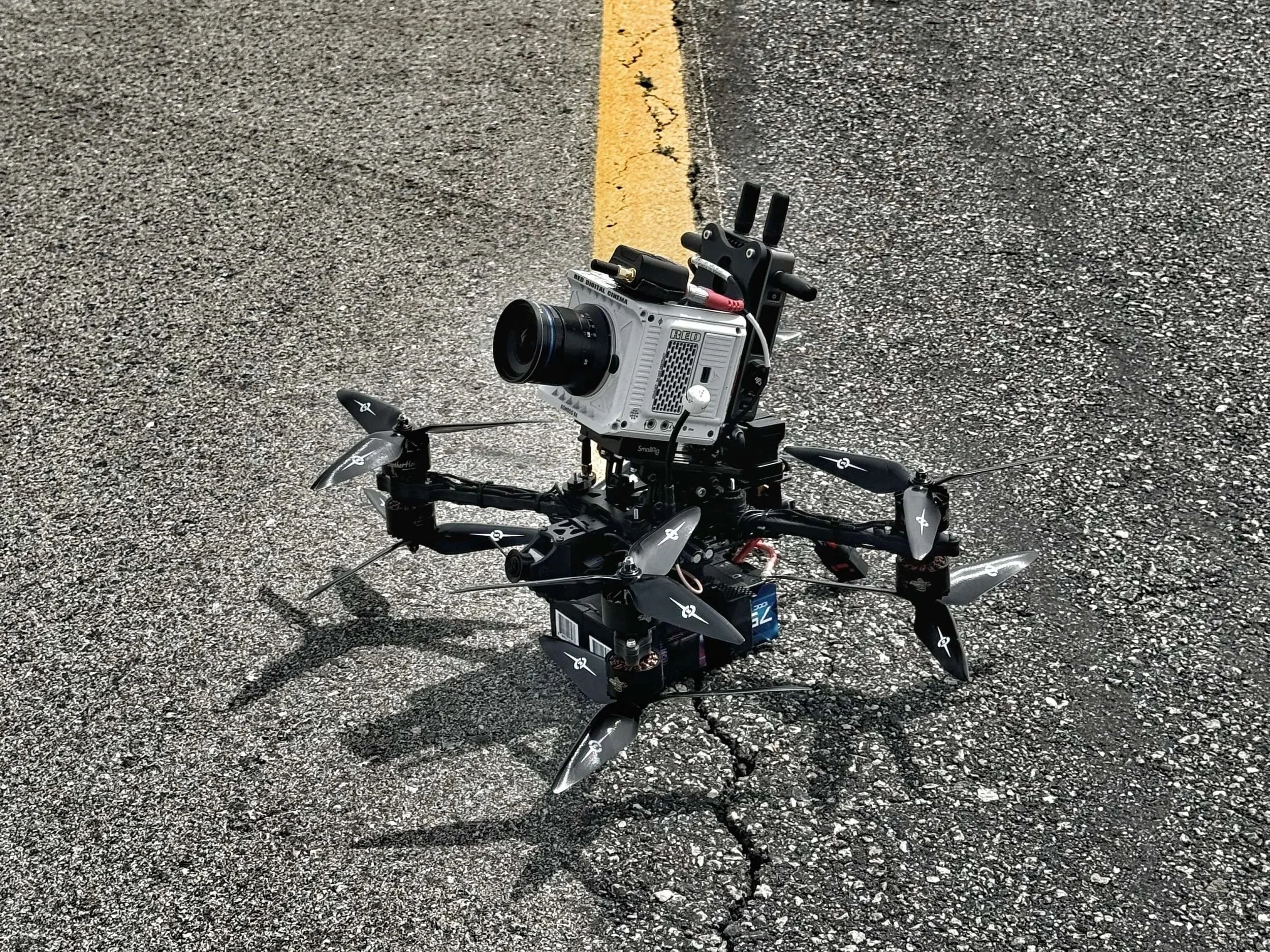 For Phoenix aerial cinematography, a fast and agile small drone capable of carrying smaller cameras like the RED Komodo with a lightweight lens is essential. This versatile platform supports single or dual-operator mode with or without a stabilized gimbal. FPV (First Person View) drones have become indispensable in drone cinema. Lithium offers a range of FPV platforms, from small quads that operate safely near talent to larger X8 drones that fly cinema cameras at speeds up to 100mph. Whatever your production FPV needs, Lithium has a solution.